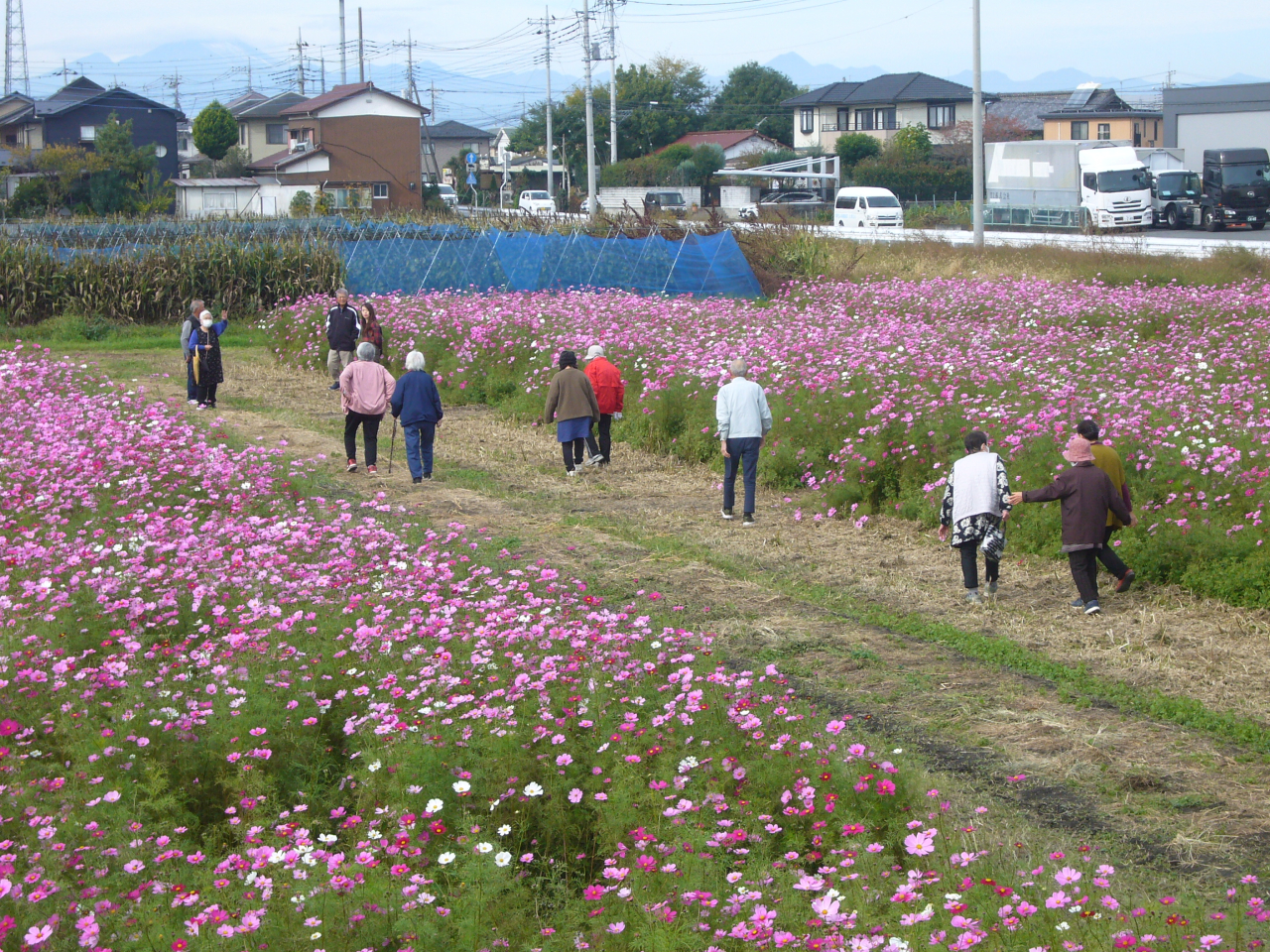 平成21年度より、地域の方々に交流を深めてもらいたいという思いから、コスモスが咲いた時期に、コスモスまつりを開催しています。まつりでは、コスモスの観賞の他に、畑に作った迷路で遊んだり、花を摘んだりと、こどもから大人までたくさんの方々に楽しんでもらっています。 また、福島地区のボランティアの会や女性部の方々にご協力いただき、まつりの参加者に豚汁や赤飯おにぎりを配布しており、おいしいご飯を食べながら美しい景色を堪能してもらっています。その他に、多くの参加者が集まるこの機会を利用し、保全会の活動内容を掲載したパネルを設置し、啓発・普及活動に取り組んでいます。