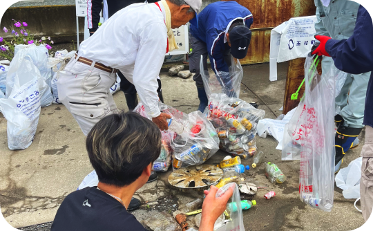 構成員のみなさんと水路の清掃活動を実施しました。 水路の中には、ペットボトルや袋ゴミの他、タイヤのホイールキャップ等の普段見かけることのないようなゴミが捨てられていました。 不法投棄は、処罰の対象となる行為ですので、絶対にしないでください。