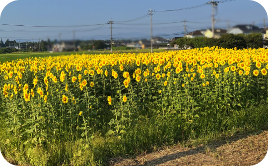 構成員のみなさんとひまわりの植栽活動を実施しました。 7月下旬ごろに満開となり、角渕地区をいろどり豊にしてくれました♪ 地域住民の方には、春はチューリップ、夏はひまわりと季節の花々を楽しんでもらえたのではないかと思います。